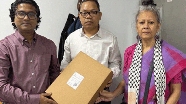 নিজস্ব প্রতিবেদক: শেখ হাসিনাকে প্রধান আসামি করে ৯ জনের বিরুদ্ধে আন্তর্জাতিক অপরাধ ট্রাইব্যুনালে গুমের লিখিত অভিযোগ জমা দিলেন মাইকেল চাকমা। সোমবার (৩০ ডিসেম্বর) সকালে আন্তর্জাতিক অপরাধ ট্রাইব্যুনালে এ অভিযোগ জমা দেন তিনি।এ সময় তিনি গুমের সময় যেই গামছা দিয়ে তার হাত বাধা হয়েছিলো সেটিও ট্রাইব্যুনালে দাখিল করেন এই ইউনাইটেড পিপলস ডেমোক্রেটিক ফ্রন্ট (ইউপিডিএফ) নেতা।