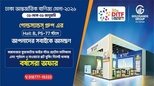 কক্সবাজার ও কুয়াকাটায় আন্তর্জাতিক মানের ৫ তারকা হোটেলে মালিকানা ক্রয় এবং আমিন সিটি পূর্বাচল ও গোল্ড সিটি মাওয়াতে প্লট বুকিং দিলেই থাকছে আকর্ষণীয় সব অফার। হোটেল, পর্যটন ও ভূমি উন্নয়ন খাতে গ্রুপটির বিভিন্ন প্রকল্পে মেলা উপলক্ষে থাকছে আকর্ষণীয় মূল্য, এক্সক্লুসিভ প্যাকেজ এবং সীমিত সময়ের বিশেষ সুবিধা। থাকবে আকর্ষণীয় র্যাফেল ড্রয়ের সুবিধাও। গোল্ডস্যান্ডস গ্রুপের পক্ষ থেকে জানানো হয়েছে, বাণিজ্য মেলায় গোল্ডস্যান্ডস গ্রুপ তাদের সেবা ও প্রকল্পসমূহ প্রদর্শন করছে। স্টলটি প্রতিদিন সকাল ১০টা থেকে রাত ৯টা পর্যন্ত দর্শনার্থীদের জন্য উন্মুক্ত থাকছে। অভিজ্ঞ সেলস ও কনসালটেশন টিম স্টলেই আগ্রহীদের সরাসরি তথ্য ও পরামর্শ প্রদান করবেন।