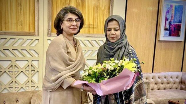 পররাষ্ট্রসচিব পর্যায়ের বৈঠকে যোগ দিয়ে ঢাকায় এসেছেন পাকিস্তানের পররাষ্ট্রসচিব আমনা বালুচ। আজ বুধবার (১৬ এপ্রিল) দুপুরে তাকে বহনকারী বিমানটি হযরত শাহজালাল আন্তর্জাতিক বিমানবন্দরে অবতরণ করে। বিমানবন্দরে বাংলাদেশের পররাষ্ট্র মন্ত্রণালয়ের মহাপরিচালক আরো পড়ুন >>