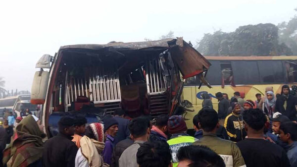 সিলেটের ওসমানীনগরে তিন বাসের সংঘর্ষে দুজন নিহত হয়েছেন। এ ঘটনায় আহত হয়েছেন ১০ জন। শনিবার (১৭ জানুয়ারি) সকাল ৭টায় ঢাকা-সিলেট মহাসড়কের ওসমানীনগর এলাকায় এ দুর্ঘটনা ঘটে। তাক্ষণিকভাবে হতাহতদের পরিচয় জানা আরো পড়ুন >>